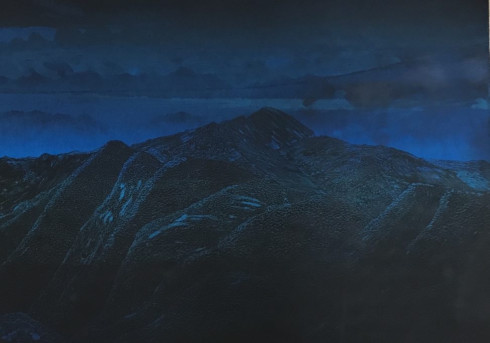 By hiking to remote locations with pencil and paper and magnifying the small, wondrous details of plant communities, her work intersects contemporary printmaking and ecological research. Habitat drawings and detailed plant survey drawings create the foundation for her printmaking practice.