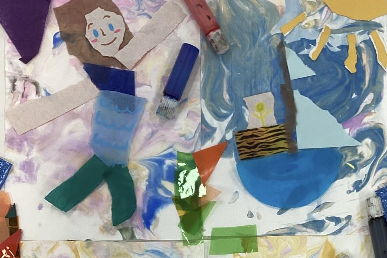 Taking inspiration from The Pool Show exhibition, kids will explore the beautiful art of Suminagashi — Japanese marbling on water — to create swirling, water-like prints. They’ll then collage shimmering, sparkly mermaid tails or fish onto their prints to bring their water artworks to life.